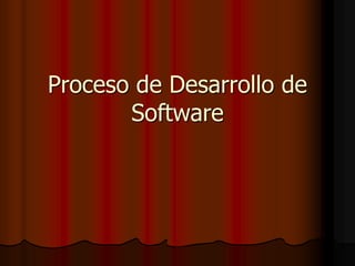 El documento describe los conceptos fundamentales del proceso de desarrollo de software, incluyendo los componentes de un modelo de proceso como la arquitectura, actividades, métodos, estrategias y herramientas. También describe varios modelos de proceso de desarrollo de software como el modelo en cascada, incremental y evolutivo, así como conceptos relacionados con la calidad del software y modelos de madurez del proceso.