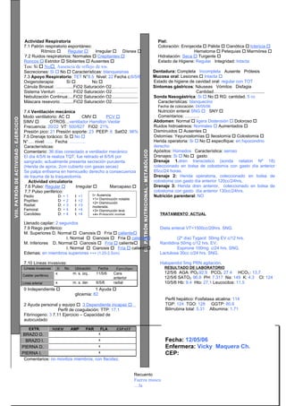 El documento presenta la valoración de enfermería de un paciente de 88 años hospitalizado por sepsis, disfunción multiorgánica y encefalopatía hepática. El paciente ingresó al servicio de cuidados intensivos conectado a ventilador mecánico y con múltiples órganos afectados. La valoración cubre los patrones funcionales de salud e incluye antecedentes, exámenes físicos, tratamientos y resultados de laboratorio. El objetivo es realizar una evaluación integral del paciente crítico para identificar sus necesidades y