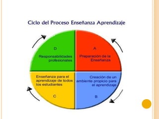 Este documento describe el proceso de enseñanza-aprendizaje. Explica que este proceso debe asegurar la construcción de aprendizajes significativos mediante técnicas didácticas que estimulen el desarrollo de conocimientos, habilidades y actitudes. También define la enseñanza como un proceso de facilitación y la aprendizaje como un proceso de apropiación de contenidos y formas de conocer que producen cambios duraderos en el individuo. Finalmente, destaca que el proceso de enseñanza-aprendizaje implica