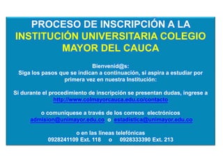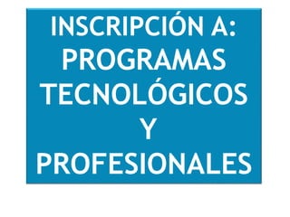 El documento presenta la oferta académica de una institución universitaria, incluyendo carreras profesionales y tecnológicas agrupadas en facultades. Se describen los ciclos propedéuticos y requisitos para ingresar a programas de administración. También incluye información sobre el proceso de inscripción, homologación, listas de admitidos y costos de matrícula.