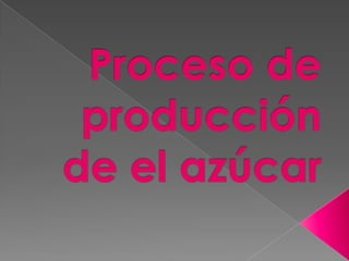 El proceso de producción del azúcar incluye las siguientes etapas: la cosecha y recolección de la caña de azúcar, el almacenaje y procesamiento de la caña, la extracción del jugo mediante molienda, la clarificación y refinación del jugo, la evaporación del agua para obtener una meladura concentrada, la cristalización para formar los cristales de azúcar, el centrifugado para separar los cristales del líquido, y el secado, enfriado y envasado del azúcar final.