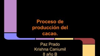 El proceso de producción del cacao comienza con la fermentación de los granos, la cual genera compuestos que determinan el sabor y aroma del chocolate. Luego, las granas se secan para detener el crecimiento de moho y poder transportarlas, y se almacenan en lugares secos para evitar hongos antes de su transporte a los países procesadores.