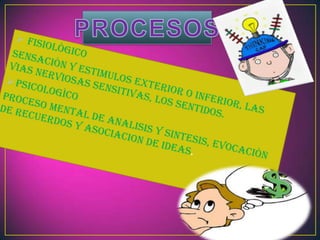 Este documento describe los procesos heurísticos utilizados en el análisis, la percepción, la síntesis y la reestructuración. Explica que la percepción analítica involucra identificar y relacionar las partes de un todo, y que los principales procesos heurísticos son la percepción, el análisis y la síntesis. Finalmente, pide responder preguntas sobre estos procesos y sobre qué se percibe en un video y una imagen.