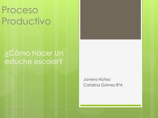 Este documento describe cómo hacer un estuche escolar en tres pasos: 1) Corta trozos de fieltro rojo, beige y negro según la plantilla de un lápiz; 2) Une las dos piezas rojas con una cremallera en el medio y luego cose sobre ellas las piezas beige y negra; 3) Dobla el estuche y ciérralo cosiendo el otro extremo, terminando así el producto.