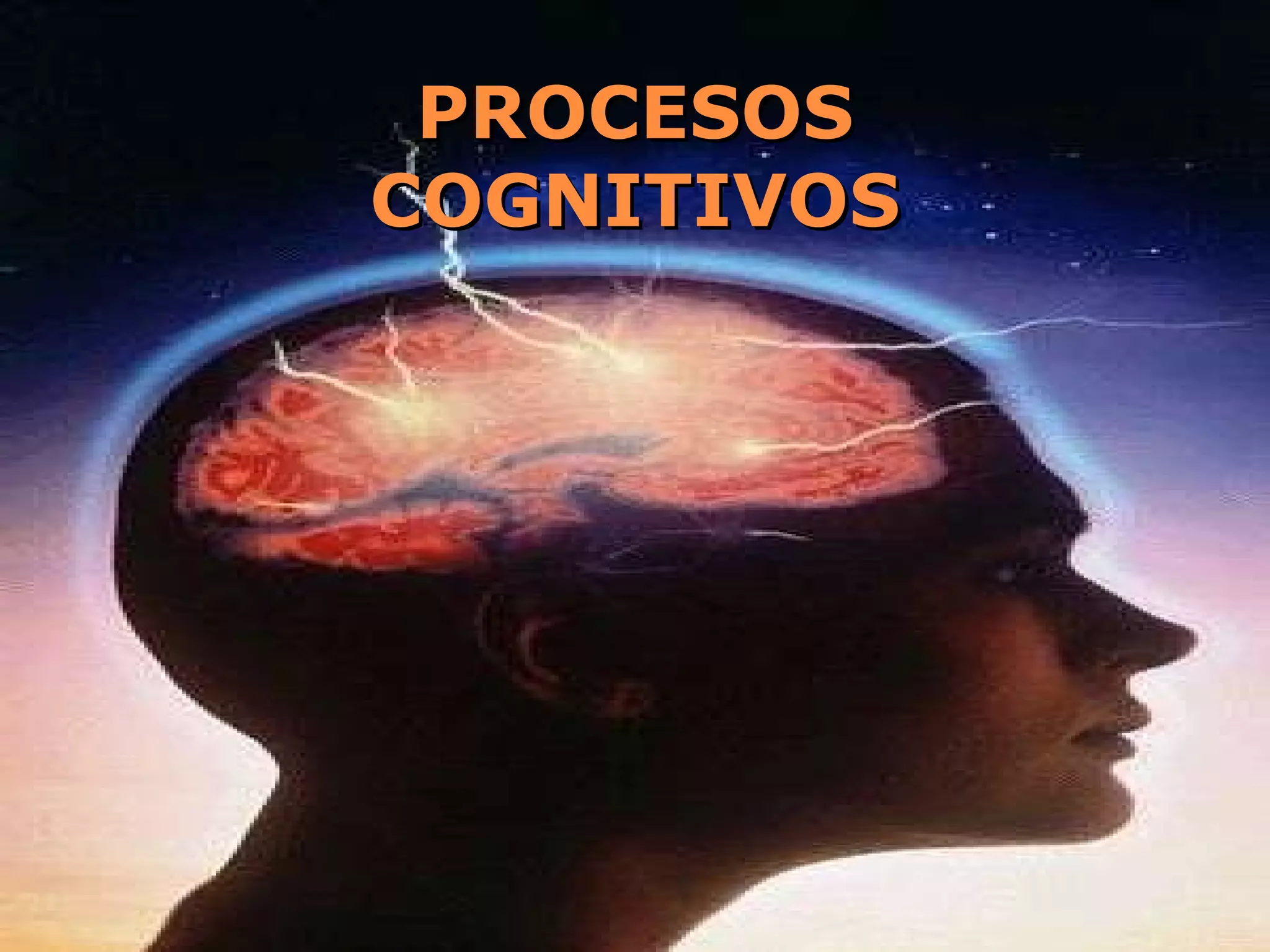 El documento describe los principales procesos cognitivos como la percepción, atención, memoria, pensamiento y lenguaje. Explica que estos procesos maduran de forma ordenada y pueden verse afectados por las experiencias. La cognición se refiere a los procesos mentales mediante los cuales se transforma, almacena y utiliza la información sensorial.