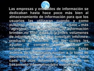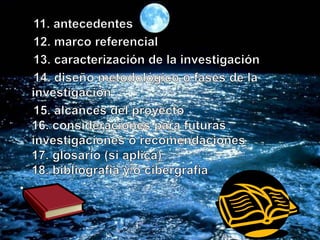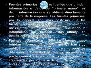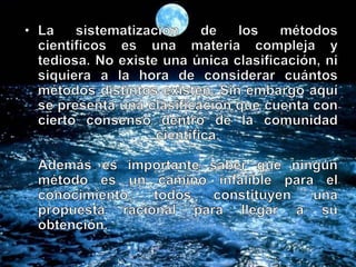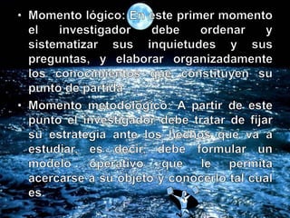Este documento trata sobre los procesos de información y la metodología de investigación científica. Explica conceptos clave como objetivos de investigación, variables, tipos de investigación, fuentes de información y métodos de recolección de datos. Además, analiza temas como la clasificación de las ciencias, tipos de conocimiento y la importancia de la investigación en la administración.