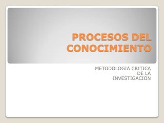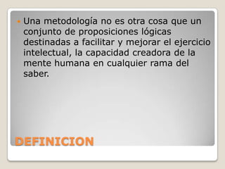 La metodología de la investigación implica el uso de la lógica y el pensamiento crítico para diseñar de manera coherente los pasos de una investigación. Esto incluye el uso de la abstracción, la inducción, la deducción, el análisis y la síntesis para estudiar un fenómeno de manera general y particular. La metodología cualitativa y cuantitativa permiten acercarse a la realidad de manera concreta y problematizarla con el fin de generar conocimiento.