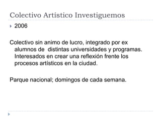 El documento presenta la trayectoria profesional y educativa de Alexander Rueda García como maestro en Artes Plásticas y Visuales. Incluye información sobre su experiencia trabajando con colectivos artísticos comunitarios y enseñando en instituciones educativas. También proporciona detalles sobre su formación académica y capacitaciones complementarias, así como publicaciones y reconocimientos recibidos.