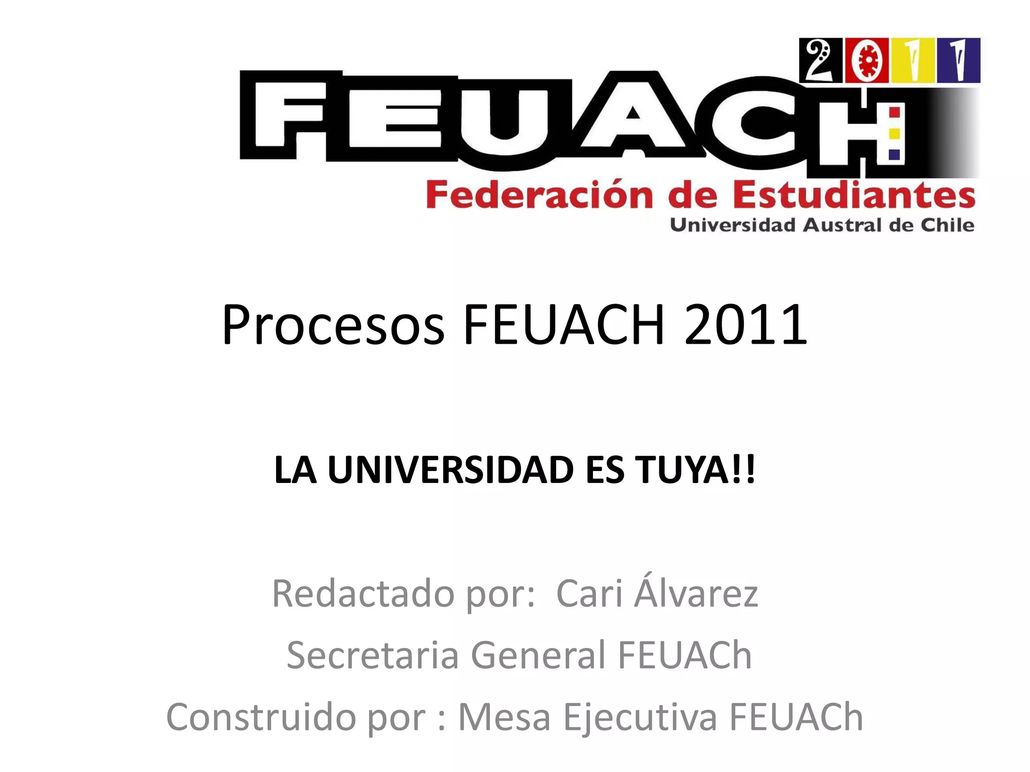 El documento presenta las principales preocupaciones y objetivos de los estudiantes de la Universidad de Austral de Chile. Los tres ejes clave son mejorar los beneficios estudiantiles, la infraestructura universitaria y aumentar la democratización. Algunas demandas específicas incluyen ampliar los beneficios de alimentación y vivienda, mejorar los techos y canchas deportivas, e incrementar la participación estudiantil en los órganos de gobierno de la universidad.