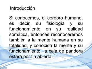 El documento analiza los procesos psicológicos en humanos, destacando la relación entre la mente y el cerebro, y cómo estas dos entidades interactúan con el entorno para formar la realidad individual de cada persona. Se discuten conceptos como la percepción, emociones y actitudes, así como su influencia en el comportamiento y el desarrollo personal a través de experiencias acumuladas. Además, el texto subraya la importancia de la inteligencia emocional y cómo las actitudes son el resultado de respuestas cognitivas y emocionales ante situaciones específicas.