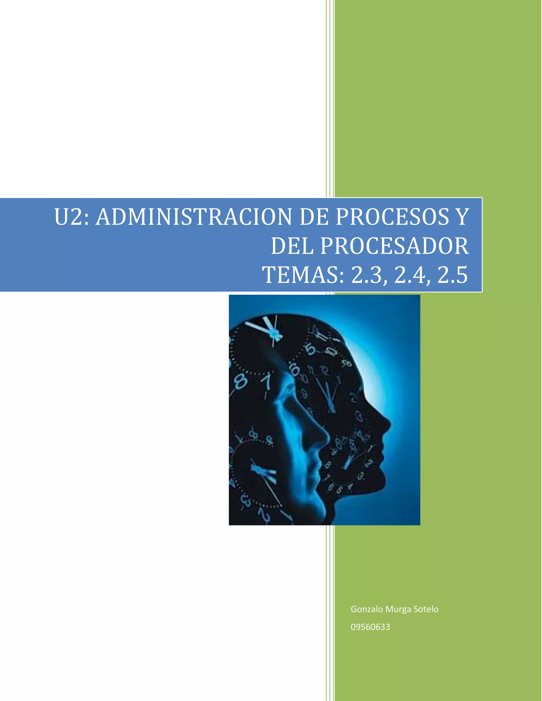 Este documento describe los conceptos de procesos, hilos, concurrencia, exclusión mutua, sincronización y planificación en sistemas operativos. Explica que los procesos son unidades de ejecución y los hilos son unidades más pequeñas que pueden ser planificadas. También describe técnicas como semáforos, monitores y problemas como el interbloqueo. Finalmente, cubre objetivos de planificación como ser justa, maximizar la capacidad de ejecución y evitar la postergación indefinida.