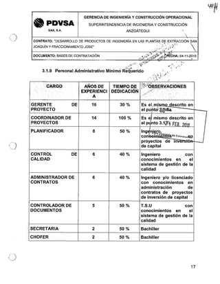 La comisión de ingeniería y servicios integrados de PDVSA Gas publicó varios procesos de contratación bajo la modalidad de 'categorías', que incluyen desarrollos de ingenierías y servicios de apoyo para la construcción operacional. Los concursos abarcan actividades de ingeniería y control de calidad, con fechas de publicación y entrega en marzo y abril de 2011. Todos los procesos son de carácter abierto y dirigidos a garantizar la continuidad operacional de diversas plantas y proyectos.