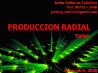 ![PRODUCCION RADIAL Javier Gutierrez Caballero Telf: 99712 - 2440 [email_address] Noviembre, 2005 Taller](https://image.slidesharecdn.com/produccionradial-091214101907-phpapp01/85/Produccion-Radial-1-320.jpg)