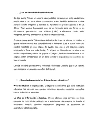 Un entorno hipermediático como la Web permite enlazar distintos elementos como texto, imágenes y sonido a través de hiperenlaces gracias al lenguaje HTML. Esto hace que la Web sea el servicio más completo de Internet donde los usuarios pueden navegar entre páginas de forma no lineal siguiendo ideas a través de enlaces. La Web funciona mediante URLs que permiten acceder a recursos específicos de forma global.