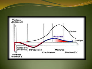 1) El documento describe los conceptos de producto, mezcla de productos y ciclo de vida del producto. 2) Explica las diferentes categorías y tipos de productos, así como la clasificación de bienes. 3) Detalla el proceso de desarrollo de nuevos productos y los factores que afectan la adopción e innovación.