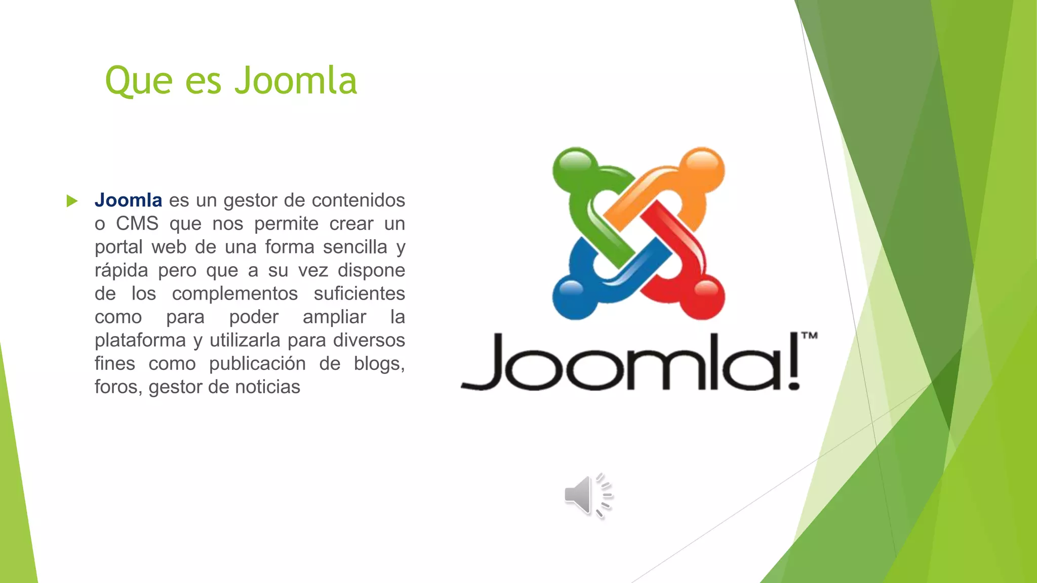 Este documento describe cómo instalar y configurar Joomla, un sistema de gestión de contenidos. Explica que Joomla requiere un servidor LAMP y cómo descargar e instalar la última versión de Joomla. También detalla el proceso de configuración de la base de datos, el acceso al panel de administración, y cómo crear el primer artículo.