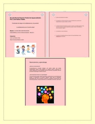 El documento resume las obligaciones del Estado Mexicano para proteger a niños y adolescentes, así como el trabajo de la UNICEF para apoyar a adolescentes en todo el mundo. La UNICEF trabaja para prevenir la violencia contra adolescentes, promover sistemas de justicia que los protejan, y empoderarlos para que participen en sus comunidades. La UNICEF también aboga por los derechos de los adolescentes, trabaja con proveedores de salud para brindar servicios adaptados a sus necesidades e impulsa programas de educación con enfoque de género.