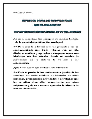 Este documento discute los métodos para enseñar historia. Explica que la memorización de fechas es tedioso y no fomenta la comprensión, mientras que contar historias a través de cuentos despierta el interés de los estudiantes. También destaca la importancia de tomar en cuenta los intereses de los estudiantes y hacerlos participar para que aprendan con más facilidad. Finalmente, contrasta una clase de historia del pasado basada en la memorización con una clase actual donde los estudiantes investigan y escriben sus conclusiones de