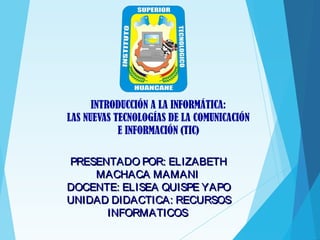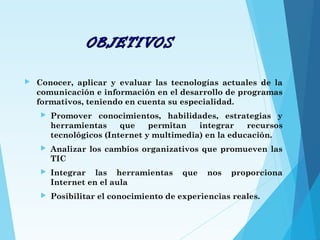 Este documento introduce las nuevas tecnologías de la comunicación e información (TIC). Explica que las TIC incluyen herramientas como Internet que procesan y presentan información de varias formas. También describe cómo Internet y recursos como blogs y wikis pueden usarse como herramientas educativas para acceder a información, comunicarse y colaborar.