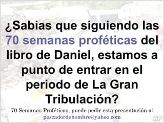 Este documento discute varias profecías bíblicas que se afirma ya se han cumplido o están en proceso de cumplimiento, incluidas las 70 semanas de Daniel, los eventos previos al Rapto de la Iglesia, y señales como desastres naturales, enfermedades y conflictos. También insta al lector a aceptar a Jesús como salvador y estar preparado para el Rapto, que según el autor podría ocurrir en cualquier momento.