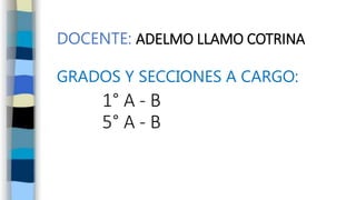 El documento presenta la información de un docente a cargo de los grados 1° A - B y 5° A - B. También celebra el aniversario 31 del colegio "Gustavo Mohme Llona" de forma virtual debido a la pandemia y muestra evidencias de las actividades de lectura realizadas en las secciones 1° A y 1° B como parte de una maratón de lectura.