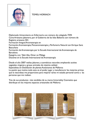 Tomeu Horrach es un experto en aromaterapia, jabones naturales y cosméticos. Ha recibido varias certificaciones y enseña aromaterapia. Cristina Sanz es enfermera y experta en fitoterapia, aromaterapia, jabones naturales y yoga. Melanie Clark dirige una escuela de terapias y enseña aromaterapia. Enrique Sanz es fundador de una escuela de aromaterapia y autor de varios libros sobre el tema.