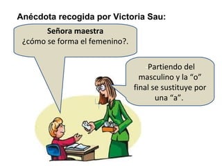 Este documento discute el uso de un lenguaje no sexista. Primero, proporciona algunos antecedentes históricos sobre el uso de lenguaje inclusivo desde los orígenes del idioma español. Luego, presenta algunos ejemplos de cómo el lenguaje puede ser sexista y propone alternativas más inclusivas. Finalmente, ofrece conclusiones sobre cómo el lenguaje modela la realidad y la importancia de nombrar e incluir a mujeres y hombres por igual para evitar la invisibilización e inexistencia de las mujeres. En resumen, argument