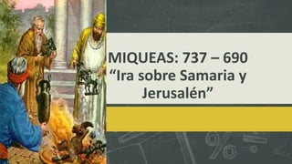 1) El libro de Miqueas profetiza el juicio divino sobre Israel y Judá debido a la injusticia y corrupción de sus líderes.