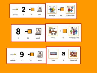 El documento describe el programa de una fiesta que incluye la recepción de los participantes a las 11:15 h, dulzainas y juegos tradicionales de 13:00 h a 14:30 h en el Centro de Formación Arsenio Gimeno UGT, juegos de mesa de 17:00 h a 18:00 h, baile y animación de 18:00 h a 20:30 h y fuegos artificiales a las 20:30 h.