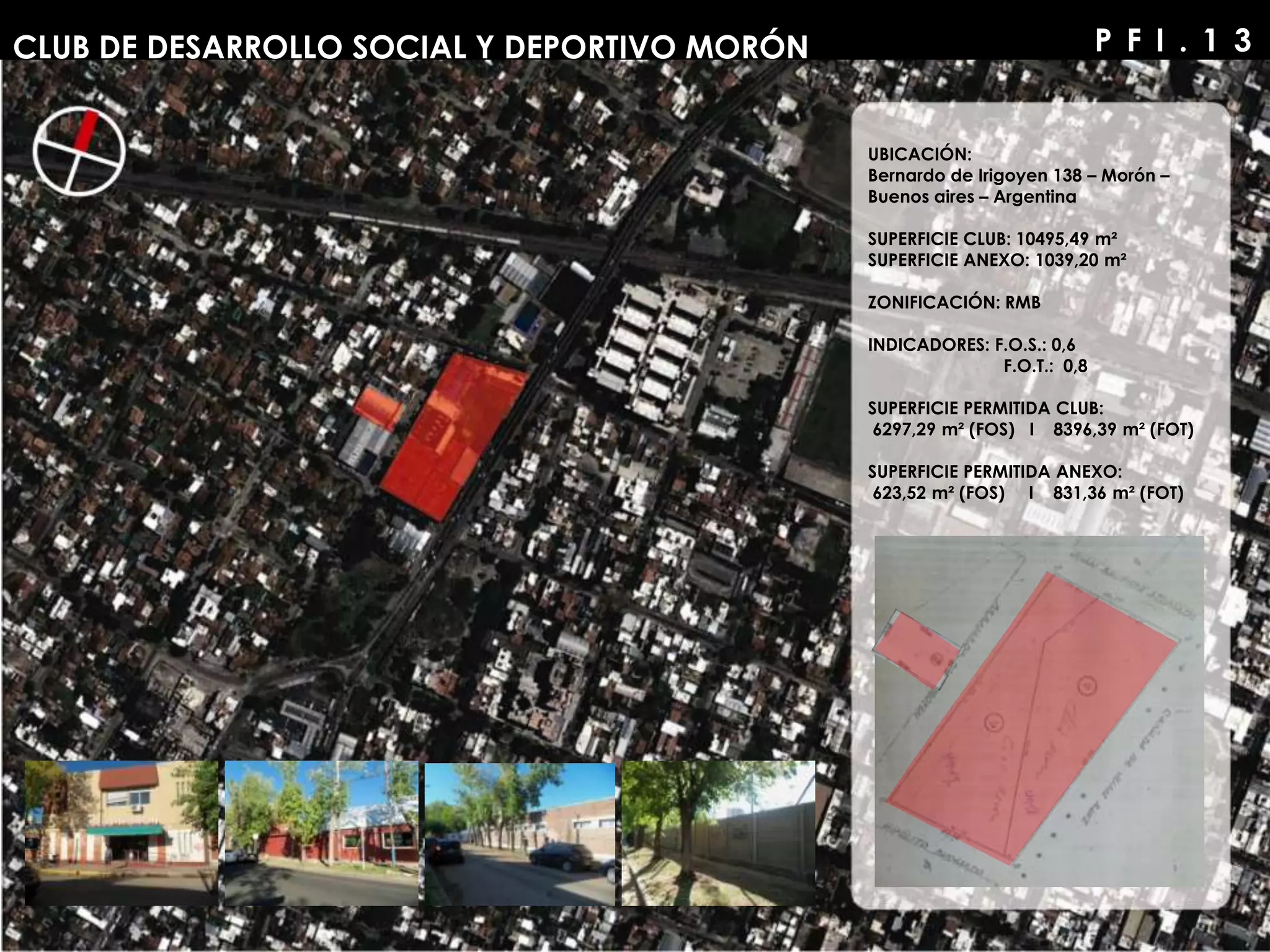 Este documento presenta un resumen del Club de Desarrollo Social y Deportivo Morón en Argentina. Describe la ubicación, superficie y zonificación del club y anexo, y propone objetivos como transformar el club en un espacio comunitario para la recreación deportiva y cultural que fomente la participación social. La propuesta mantiene las actividades existentes como basket, voley y natación, e incorpora nuevas como tenis, gimnasia artística y un microestadio.