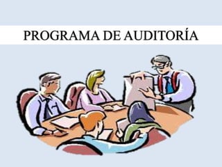 Este documento describe los aspectos clave de un programa de auditoría, incluyendo su definición, alcance y objetivos. Explica que la elaboración del programa de auditoría es responsabilidad del auditor y que debe detallar aspectos como el programa tentativo, programa definitivo y los tipos de programas. Además, destaca la estructura básica de un programa de auditoría, que incluye objetivos, procedimientos, responsables, criterios de evaluación y período auditado.