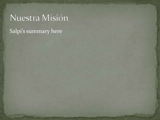 El documento describe un programa de educación ambiental con actividades como una excursión opcional a las Islas Galápagos y proyectos de obras públicas. Su misión es en el Cusco, la antigua capital del imperio inca, aunque su capital actual es Lima.