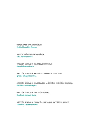 Este documento presenta el Programa de Estudio 2011 para preescolar elaborado por la Secretaría de Educación Pública. Describe la introducción y presentación del programa, incluyendo los objetivos de la Reforma Integral de la Educación Básica y las características del nuevo programa de preescolar. También incluye la lista de los funcionarios involucrados en la elaboración del documento y programa.