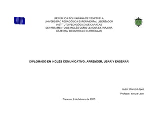 DIPLOMADO EN INGLÉS COMUNICATIVO: APRENDER, USAR Y ENSEÑAR