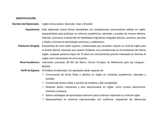 Nombre del Diplomado:Inglés Comunicativo: Aprender, Usar y Enseñar