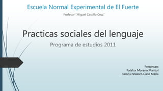 Este documento describe dos modalidades de trabajo para las prácticas sociales del lenguaje en la escuela: 1) Los proyectos didácticos, que implican una serie de actividades secuenciadas para crear un producto del lenguaje con una finalidad comunicativa real. 2) Las actividades permanentes, que permiten a los estudiantes explorar prácticas de lenguaje de manera más libre. También explica que los proyectos deben tener propósitos comunicativos y didácticos, y que en el segundo período escolar los niños pequeños ya pued