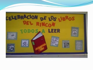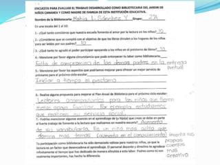Este documento describe las diversas actividades de un programa de fomento a la lectura en una escuela, incluyendo una biblioteca escolar, préstamo de libros, talleres literarios con padres, celebraciones del día del libro y seguimiento del índice lector de los estudiantes.
