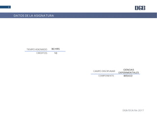 Este documento presenta el programa de estudios de la asignatura de Química I para el primer semestre de bachillerato. Incluye la fundamentación, ubicación y objetivos de la asignatura, así como los bloques temáticos, competencias, contenidos y evaluación. El programa busca desarrollar conocimientos químicos aplicados a la vida diaria y promover el cuidado del medio ambiente.