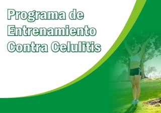 El programa de entrenamiento contra celulitis incluye rutinas de entrenamiento de resistencia de 30 minutos dos veces por semana en el gimnasio y tres veces por semana en casa, así como ejercicio cardiovascular de baja intensidad opcional de 20 minutos tres veces por semana. El programa proporciona flexibilidad para entrenar en el gimnasio o en casa y días de descanso.