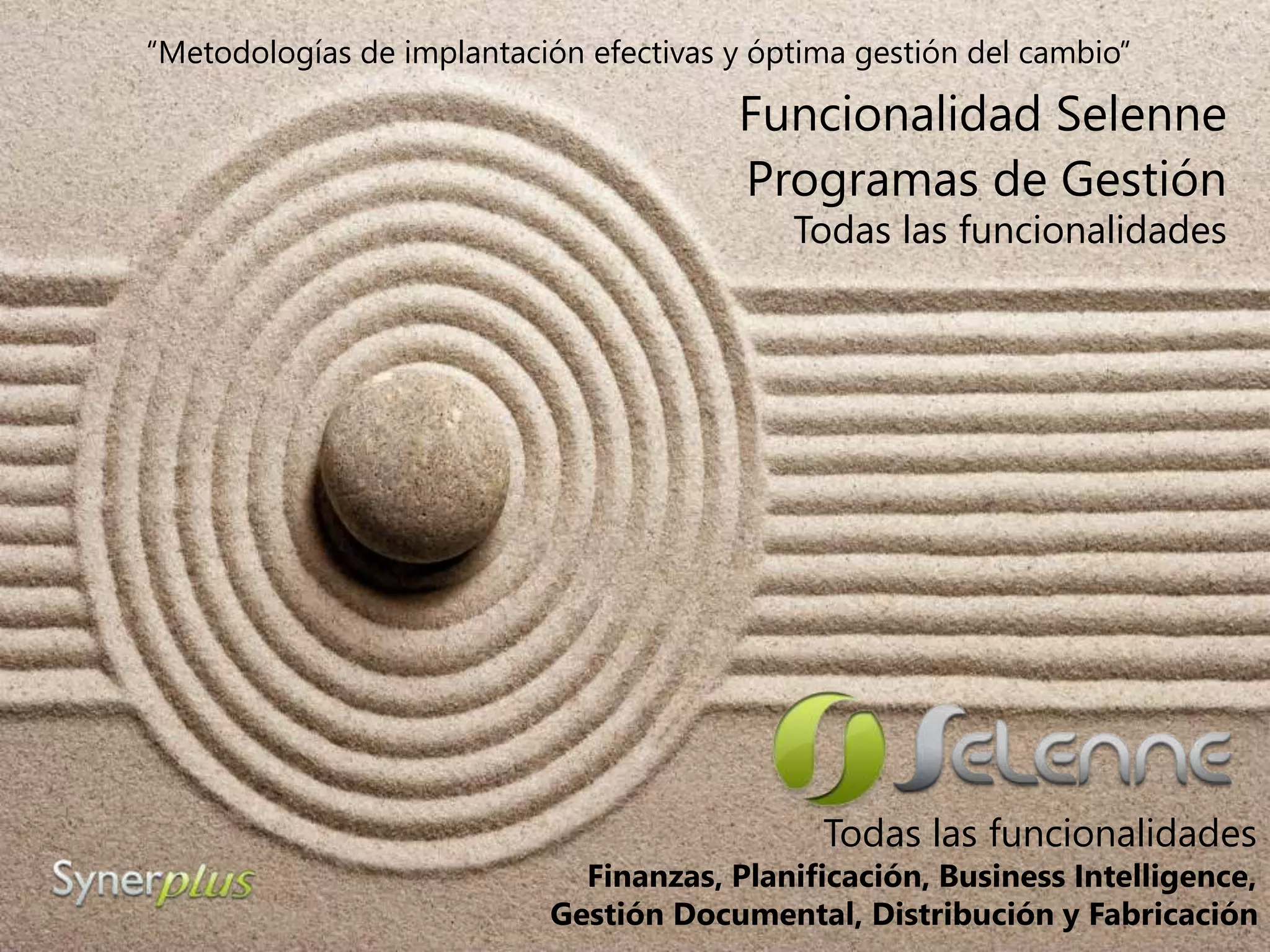 El documento describe la evolución de programas de gestión, como Selenne, que ofrecen funcionalidades integrales y adaptativas más allá de la transacción básica, permitiendo a las empresas gestionar información y procesos de manera eficiente. Resalta la importancia de unificar sistemas y de seleccionar ERP escalables y tecnológicos para satisfacer necesidades futuras, incluyendo movilidad y business intelligence. Además, el texto enfatiza la gestión documental y corporativa para asegurar el acceso adecuado a la información dentro de un entorno organizacional.