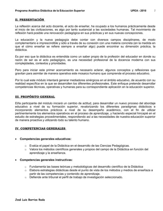 Este documento presenta el programa analítico de un módulo sobre didáctica de la educación superior. El módulo busca que los estudiantes desarrollen habilidades teóricas, técnicas y humanas para analizar las características de la didáctica y aplicar estrategias educativas en el contexto de la educación superior. El programa incluye unidades sobre los antecedentes de la didáctica, desempeño docente, relaciones interpersonales en la educación superior, y estrategias didácticas aplicadas a distintas disciplinas