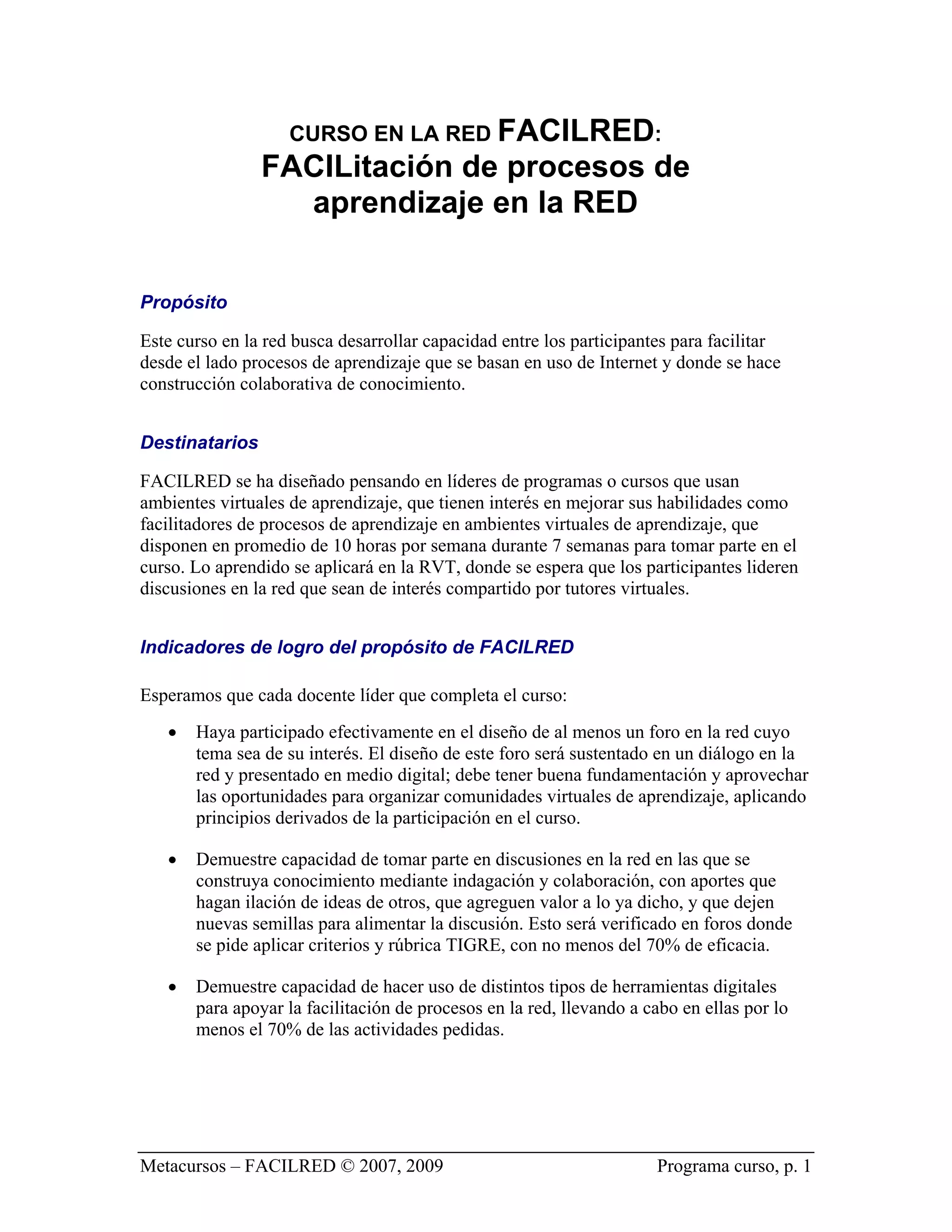 El curso 'Facilred' busca desarrollar habilidades en la facilitación de procesos de aprendizaje en línea, dirigido a líderes de programas educativos que utilizan ambientes virtuales de aprendizaje. A lo largo de siete semanas, los participantes aprenderán a diseñar foros digitales y a liderar discusiones colaborativas, desarrollando competencias pedagógicas, comunicativas, técnicas y ético-sociales. Al finalizar, quienes cumplan con los requisitos recibirán un certificado y la oportunidad de liderar foros en la red a cambio de una compensación económica.