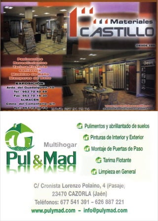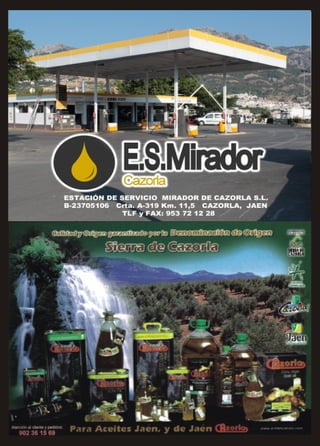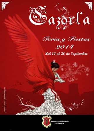 Este documento presenta el programa de actividades para la Feria y Fiestas de Cazorla en septiembre de 2014, incluyendo eventos religiosos en honor al Cristo del Consuelo, corridas de toros, conciertos, juegos, deportes y fuegos artificiales durante varios días de celebración.