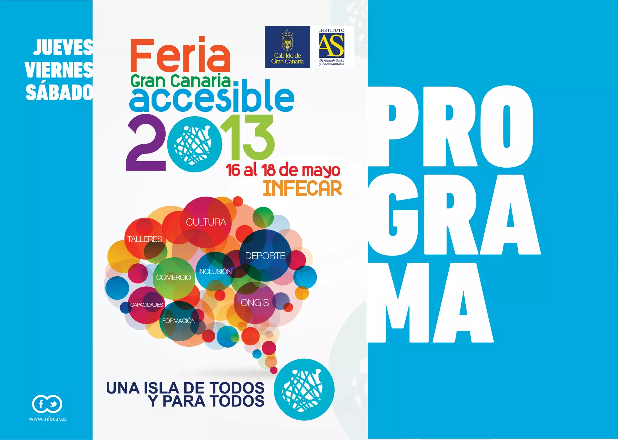 El documento detalla un extenso programa de actividades relacionadas con la inclusión y accesibilidad para personas con discapacidad en Gran Canaria, que incluye ponencias, talleres y mesas redondas sobre temas como la educación inclusiva, la responsabilidad social corporativa, y el turismo accesible. Se presentan conferencias de profesionales del sector, así como exposiciones y actividades prácticas para sensibilizar al público sobre las necesidades y derechos de las personas con discapacidad. Además, se incluyen reflexiones sobre la mejora de la accesibilidad en el entorno construido y el uso de nuevas tecnologías.