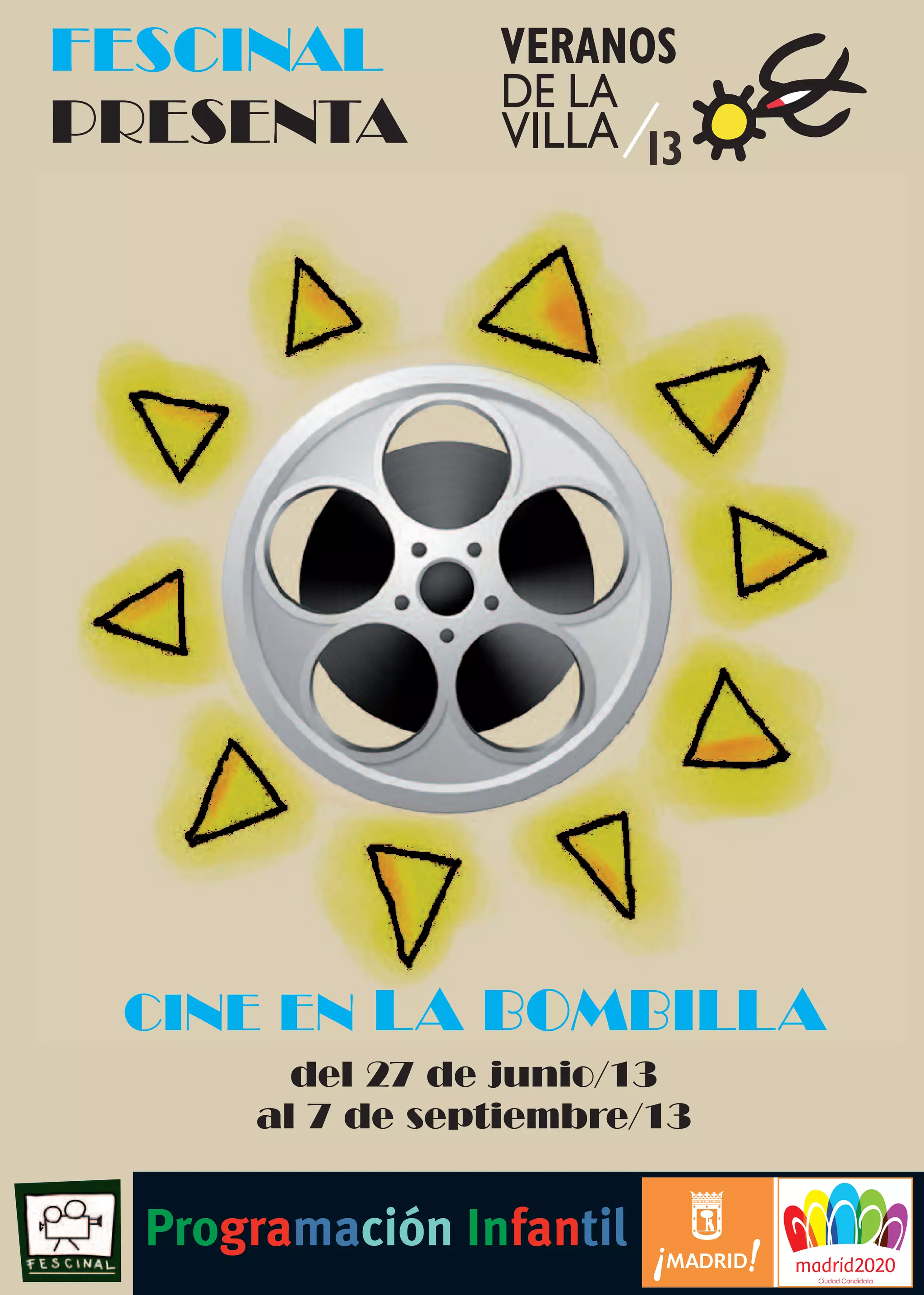 El documento detalla la programación de películas infantiles en 'La Bombilla' del 27 de junio al 7 de septiembre de 2013, incluyendo títulos como 'Frankenweenie', 'Los Croods' y 'Gru, mi villano favorito 2'. Las películas están clasificadas por edades y se complementan con actividades para el público infantil, como sorteos y piñatas. Se proporciona información adicional sobre precios de entradas y opciones de transporte.