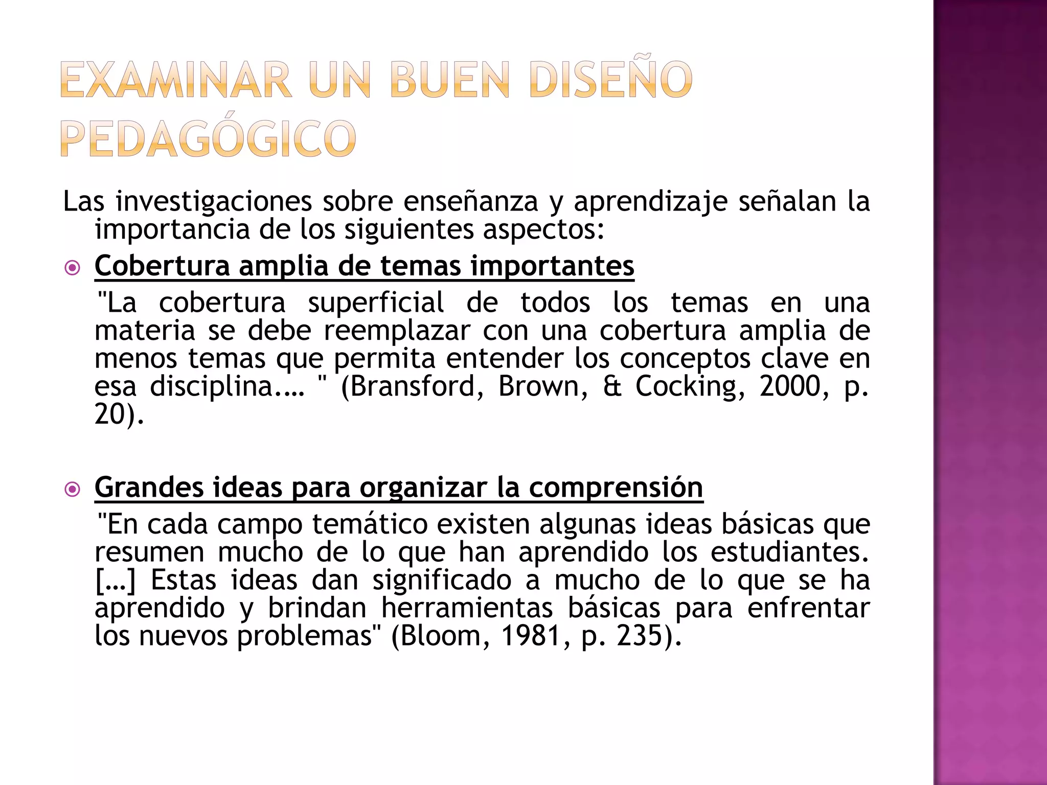 El documento describe los principios clave del aprendizaje basado en proyectos, incluyendo una cobertura amplia de temas importantes, el uso de grandes ideas para organizar la comprensión, la evaluación continua y las tareas significativas y auténticas. Explica que el aprendizaje basado en proyectos se centra en el estudiante, guía el aprendizaje a través de preguntas importantes y fomenta la indagación activa y el pensamiento de alto nivel.