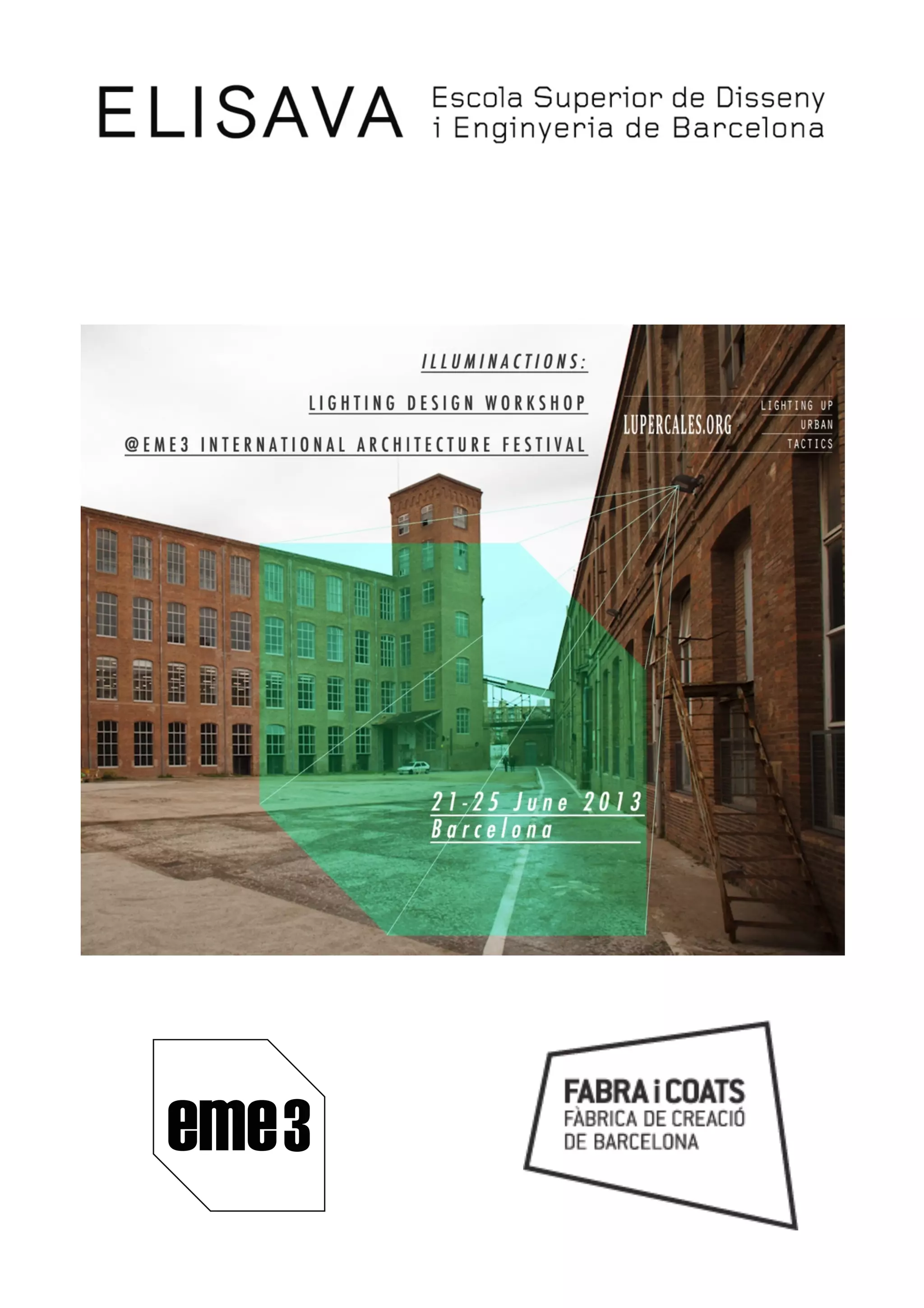 El taller de diseño de iluminación se centra en un caso de estudio real en el contexto del festival eme3, donde se explorarán diversas necesidades de comunicación y diseño en un espacio efímero. Los asistentes, incluidos diseñadores y arquitectos, trabajarán en la planificación práctica de iluminación para distintos espacios, promoviendo el aprendizaje colaborativo y la aplicación de tecnología de iluminación. El programa incluye sesiones teóricas y prácticas en la antigua fábrica Fabra i Coats, con actividades que van desde la instalación hasta la exposición de proyectos en julio.