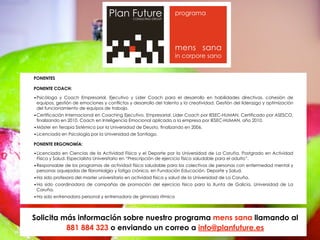 Este documento presenta la metodología y objetivos de un programa sobre gestión emocional y estrés. El programa se basa en contenido teórico apoyado en material audiovisual y trabajo en grupos para hacer el contenido interactivo. Los objetivos incluyen determinar la importancia de la gestión emocional y el estrés, exponer causas de conflicto y frustración y sus estrategias, conocer riesgos de lesiones musculoesqueléticas y medidas preventivas. El programa será impartido por un coach en inteligencia emocional y una licenciada en er