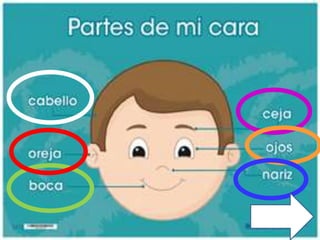 Este documento presenta varios diagramas de partes del cuerpo humano como la nariz, ojos, boca, cejas, orejas y cabello. Luego anuncia que aprenderán las articulaciones de las extremidades, mostrando diagramas de muñeca, rodilla y tobillo. Finalmente, pide al lector que identifique cuál de varios diagramas está correctamente ordenado y felicita su respuesta.