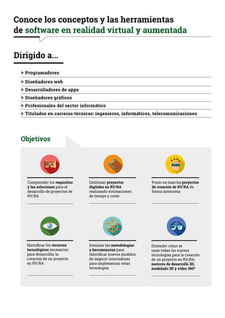 El programa superior en realidad virtual y aumentada capacita a los profesionales en el desarrollo de proyectos y la creación de contenidos en estas tecnologías. Los participantes aprenderán sobre conceptos, herramientas de software y metodologías necesarias para implementar proyectos de RV/RA, incluyendo prácticas en motores de desarrollo y modelado 3D. Se ofrece un enfoque integral con la guía de expertos del sector, además de recursos como clases magistrales y un proyecto final práctico.